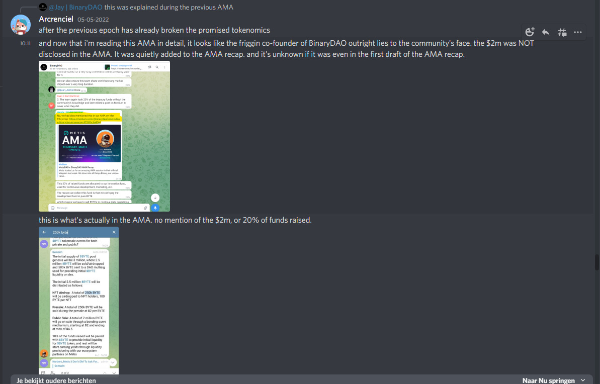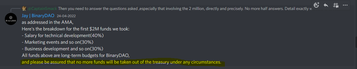 I didn’t participate in the funding round of BinaryDAO. My views are based on conversations with investors who did as well as the chat history in Discord and Telegram.