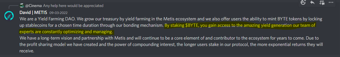BYTE is still an important protocol for Metis given the size of the treasury which is deployed in the Metis eco