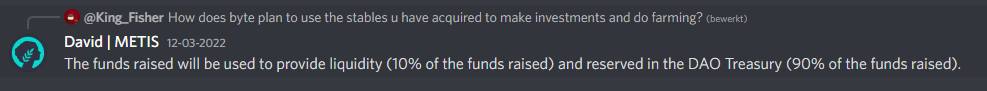 On the last Twitter spaces the main dev 0xMarin mentioned that BYTE will fully remain in stables until there is a clear trend reversal in the market. As far as I know the treasury has never been invested in something else then stables since the start (April 2022). This has preserved value during the bear market which is great.